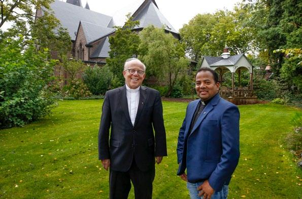 Pastoor Felie Spooren met kapelaan Ramesh. Beiden hebben Valkenswaard per 1 oktober verlaten. (Foto: Jurgen van Hoof)
