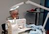 Een vrijwilligster van het Repaircafé is bezig met het herstellen van kleding.
