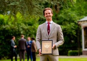 Tom Pijnenburg na de prijsuitreiking. Hij won naast de oorkonde ook een geldbedrag voor bijvoorbeeld een vervolgstudie.