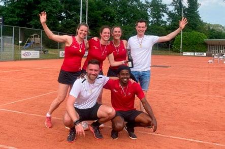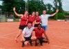Staand vlnr. April en Lucky van Gennip, Kitty Bruning, Mark Geurts, voor: Jannis Passalis en Jervone Antoine.