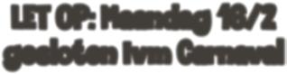 i.v.m. carnavalsvakantie: zie elders op deze pagina
