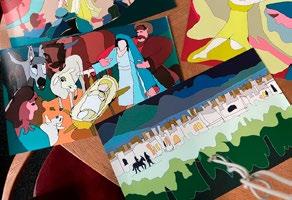 Paul Janssen, tot 2022 pastoor in Deurne, had in zijn nieuwe parochie de verhalen rondom advent en kerst bij elkaar gebracht, als toelichting op de schilderijen die in de Catharinakerk in ’s-Hertogenbosch hangen. Met deze verhalen en het schilderij van Lebel als inspiratie werd Jolanda benaderd. Deze verhalen inspireerden Jolanda tot het maken van een zevental ontwerpen.