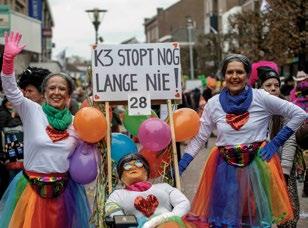 De negen deelnemende groepen, De Tobbers, Roseclub, FC WA?, Onjeklonje, Dolle mina’s, Queens on Fire, 2 Kontiki en de wortel van 14, Leste Reundje en Wasutlekker? hadden kosten noch moeite gespaard om hun act tot grote hoogte te stuwen. Prachtige kostuums, een uitgekiend repertoire van meezingers en veel, heel veel, plezier zetten Deurne en de Zeilberg op z’n kop. En ook dit jaar waren de honderden fietsen rond de Deurnese Markt