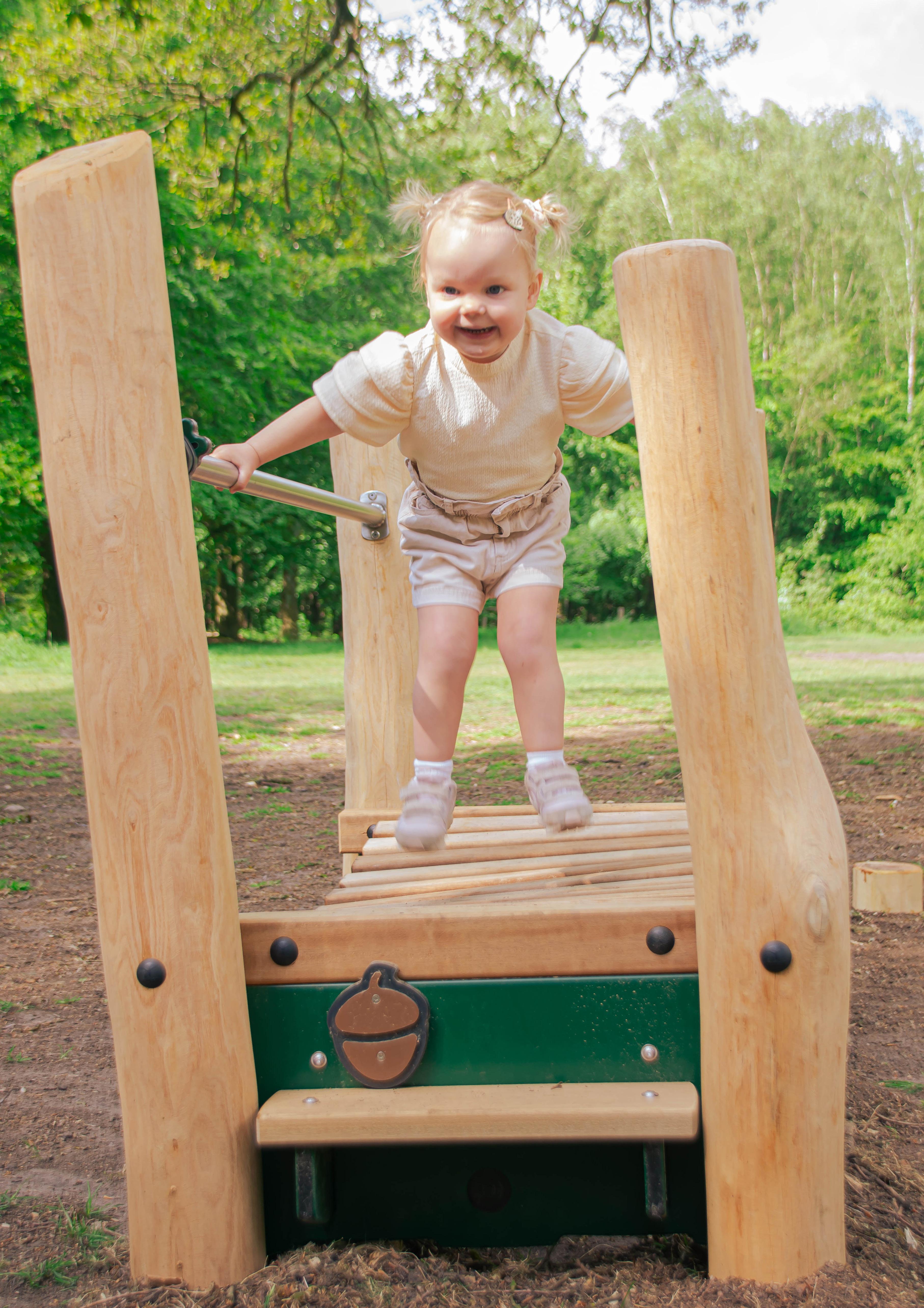 Die Holzspielgeräte sind aus sorgfältig ausgewähltem, nachhaltigem FSC®zertifiziertem Holz hergestellt, das für Festigkeit und Stabilität sorgt. Mit abgerundeten Kanten und einer sicheren Konstruktion können Eltern und Aufsichtspersonen ihre kleinen Abenteurer unbesorgt spielen und entdecken lassen.