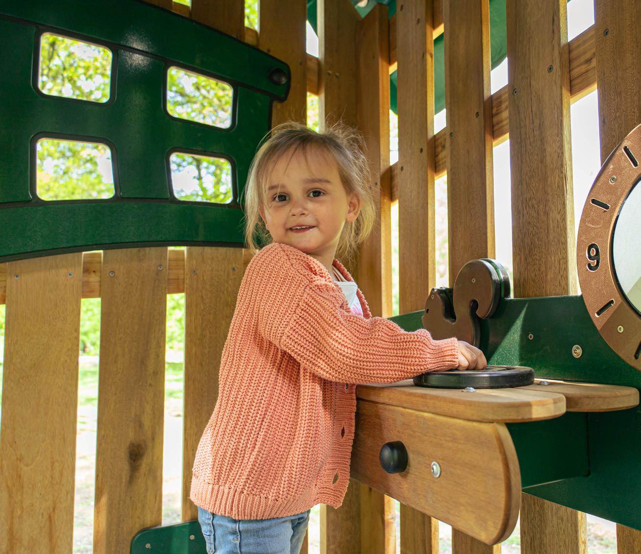Jedes Kind ist einzigartig und hat unterschiedliche Fähigkeiten und Bedürfnisse. Deshalb sorgen wir dafür, dass der Spielplatz für Kinder mit unterschiedlichen körperlichen und kognitiven Fähigkeiten zugänglich ist. Wir haben die Produktlinie Little Explorer um verschiedene Spielanreize wie eine Küche, eine Angelrute und um Angelköder erweitert. So gibt es für jeden etwas zu entdecken.