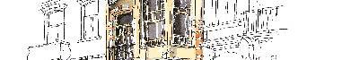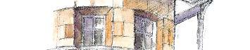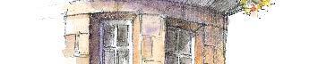 Auf das Gebäude gezeichnete Details werden nicht durch übermäßiges Lavieren zerstört, sondern nur etwas weicher gezeichnet.