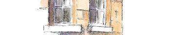 Dieser ruhige Platz eignet sich wegen seiner Detailgenauigkeit hervorragend für die Darstellung mit wasserlöslichen Buntstiften. Die wichtigen Einzelheiten konnten vorgezeichnet und dann laviert werden, um einen lockeren, malerischen Effekt zu erzielen.