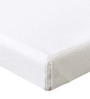 Baumwollmischgewebe mit weißer, leicht saugender Universalgrundierung, gleichmäßige, mittlere Struktur, 330 g/m²; das Gewebe ist nach hinten umgeschlagen und rückseitig geklammert. Hartholzkeile ermöglichen die spätere Korrektur der Gewebespannung durch Auskeilen.