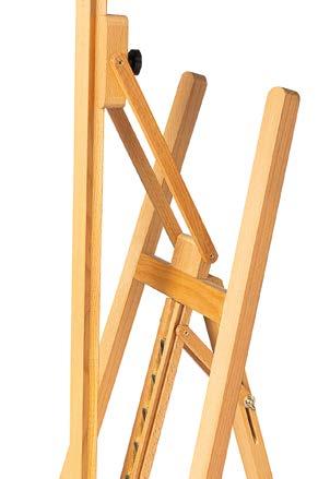 Die stabile Dreibeinstaffelei besteht aus massivem, mit Leinöl getränktem Buchenholz. Sie verfügt über einen höhenverstellbaren Tisch mit Doppelablage für Pinsel und Farbtuben. Die Neigung ist stufenlos einstellbar und der Arbeitswinkel kann durch eine Zusatzverstellung schnell in eine senkrechte Lage gebracht werden. In Europa gefertigt.