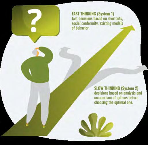 Ena od temeljnih teorij, ki jo zagovarja vedenjska ekonomija, je, da človeške odločitve potekajo prek dvojnega sistema odločanja. Nekatere se usmerjajo prek sistema 1 (našega sistema za hitro odločanje), ki išče hitre odločitve, utemeljene na bližnjicah, pri čemer se izogiba premišljenemu primerjanju razpoložljivih možnosti. Za sistem 1 je prednostna naloga hitro sprejeti odločitev ali se sploh ne ukvarjati z odločanjem in sprejeti tisto, kar je nastavljeno kot privzeto.