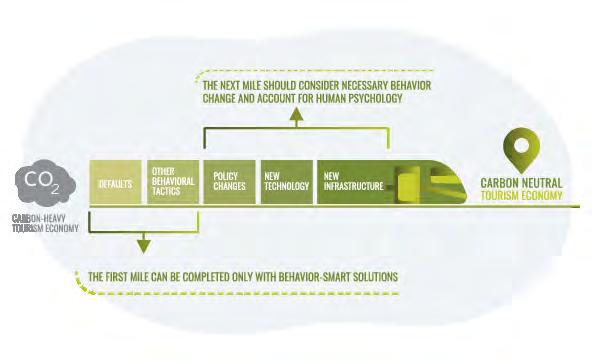 Pristop First Mile temelji na uporabi znanja o spreminjanju vedenja na načine, ki ljudem v turistični industriji olajšujejo ukrepanje v smeri trajnostnosti. Temelji na trenutnem znanju iz vedenjske ekonomije, da samo zagotavljanje informacij o trajnostnih možnostih ne spremeni preferenc turistov in delavcev do teh možnosti. Obstaja več pomembnih značilnosti vedenja turistov in delavcev, ki pojasnjujejo, zakaj samo opozarjanje na trajnostno možnost ne vodi do spremembe vedenja: