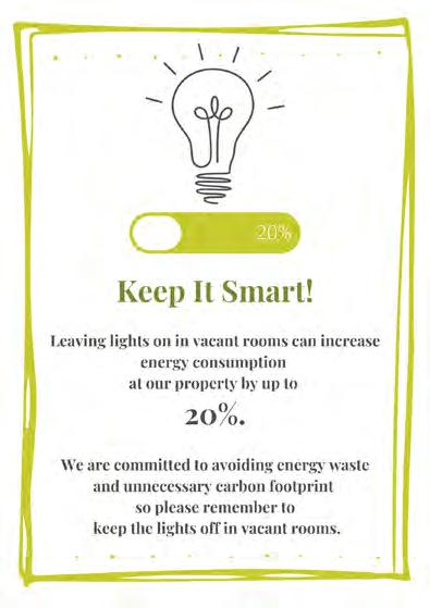 • Večina porabe vode in energije med bivanjem gostov je nenamerna in posledica pomanjkanja ozaveščenosti.