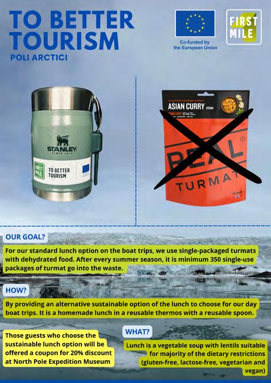Zato se kljub dejstvu, da je analitični proces in proces ocenjevanja potreb, na podlagi katerih so bile izbrane predstavljene taktike, zajemal širok nabor izzivov, s katerimi se turistična podjetja soočajo pri svojih prizadevanjih za trajnostnost, poudarek daje le vprašanjem, ki jih je mogoče rešiti s taktikami (ukrepi) First Mile. Naslednji izzivi Next Mile, ki vključujejo bolj zapletene rešitve, kot so spremembe izdelkov, pomembno preusposabljanje delavcev, spremembe infrastrukture ali prevoznih storitev itn., so priznani, vendar so zunaj obsega sedanjega projekta.