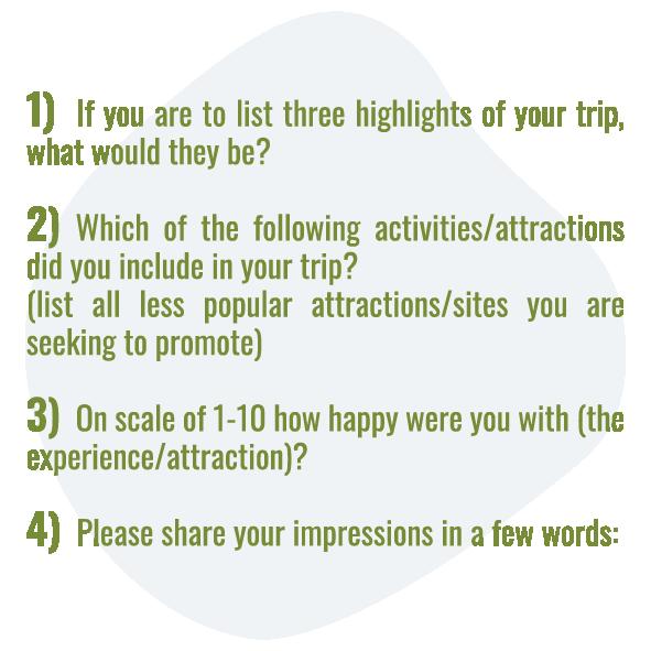 4. Anketa med malimi in srednje velikimi turističnimi podjetji v vseh sodelujočih destinacijah, s katero se pridobi neposredni vpogled iz prve roke od ciljnih upravičencev o potrebah in izzivih, s katerimi se soočajo pri svojih prizadevanjih za trajnostnost.