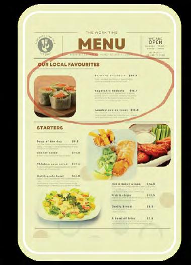 #16: Promovirajte lokalno hrano tako, da jo na jedilnike uvrstite pod posebnim razdelkom 66 #17: Promovirajte lokalno hrano tako, da izpostavite lokalne izdelke v samopostrežnih bifejih