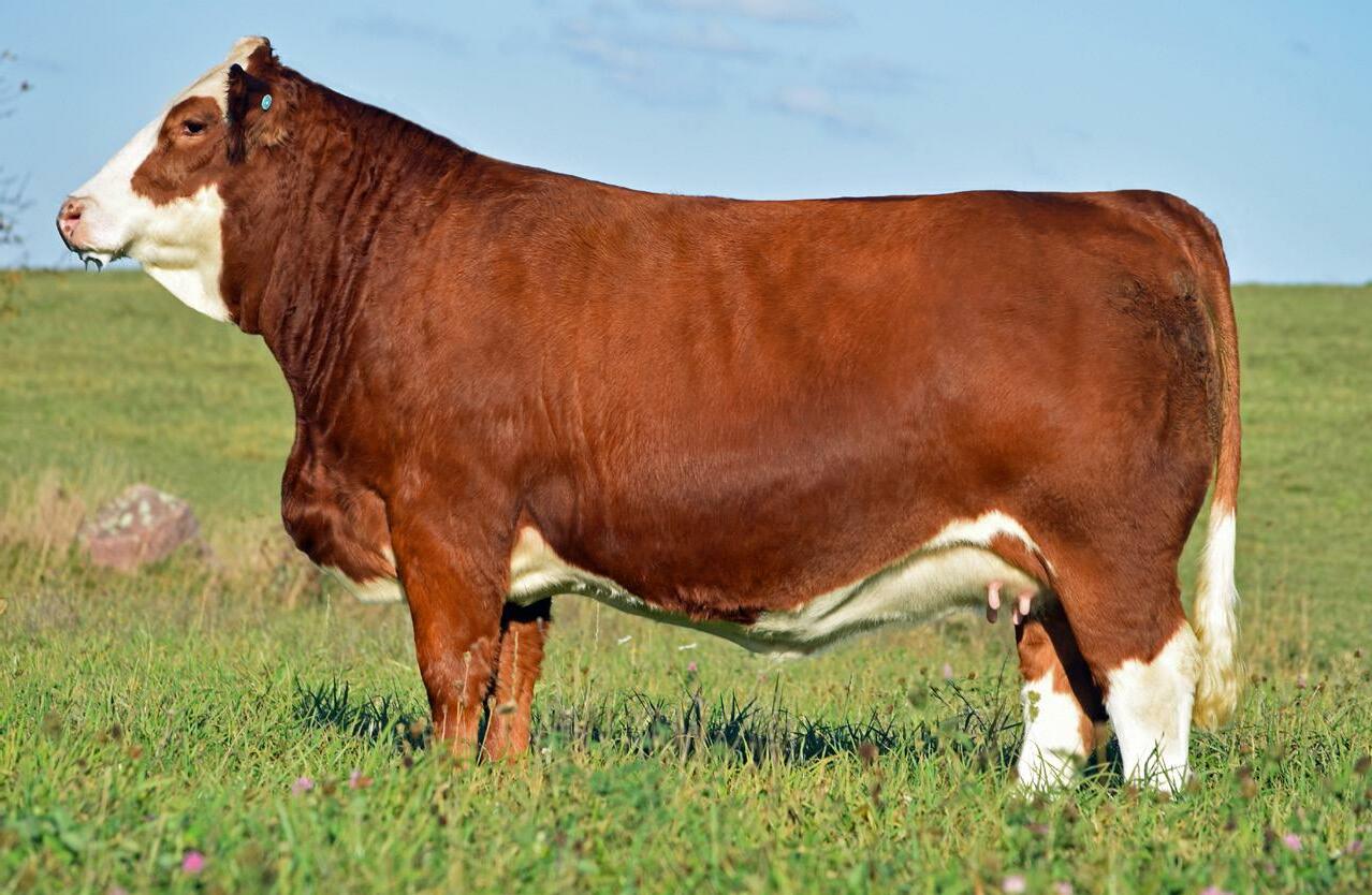 This homo polled, big barrelled PHS Bank Roll bred is setting down a nice udder and has all the ingredients to make a tremendous brood cow in a moderate package. She has stood out since she was a calf and is the kind that you just had to put a halter on. Even better is that it only took once and she was broke. She’s so similar phenotypically to her JNR Philosophy dam but even darker red. The Great Guns Mitzi cow on the bottom side adds one more great cow and the service to FGAF Guerrero could be a very profitable token. AI bred to FGAF Guerrero March 25th. Preg checked safe. ▶ Inset Picture: Service Sire FGAF Guerrero 810Y