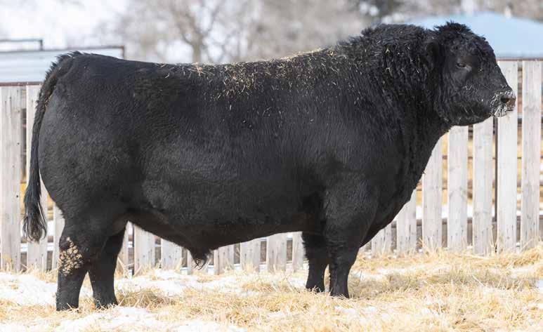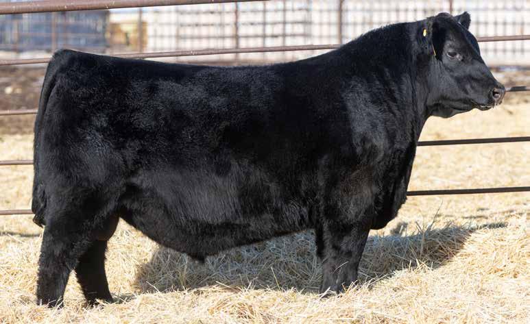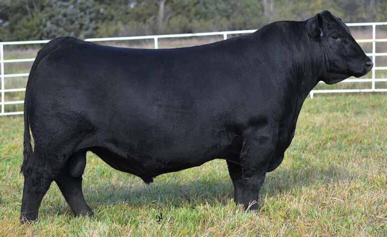 A striking sale feature among the Emerald sire group. He is easy to look at with his attractive design and floating movement. Ae is long and clean through his front end, straight topped, square hipped with fuzzy jet-black hair. His dam is a moderate framed, pretty uddered, and angular made daughter of the $50,000 Brooking Silver Lining 5012.