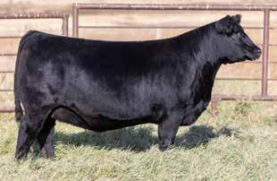 A low-birth-weight son of Brooking Golden Ticket 8056 that gained well and earned an 826lb weaning weight. Brooking Golden Ticket 8056 was a resident herd sire that was attractive, heavy muscled and powerfully constructed. The dam is a moderate framed, excellent uddered, docile daughter of the famed SAV Renovation 6822. The grandam is an incredibly massive female.