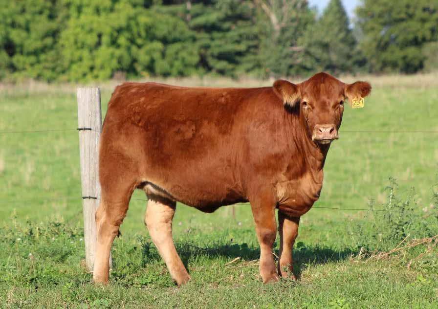 242J is a beautifully made eye catching female from front to back. This homo polled daughter of Wulfs Compliant is out of an outstanding Wulfs Bank Robber female that’s quickly making her way to the top of the herd. The Complaint daughters are turning into some great milking mama cows. She sells safe for a January calf to the exciting new AI sire Royal Jester.