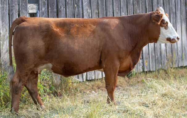 Antrim Miss Ruffer is a 12-year-old polled fullblood. She has lots of length, a sound udder, and still walks out well on a sound set of feet and legs. She has great spring of rib and is bred to calve early in 2025. Daughter sells as Lot 11.
