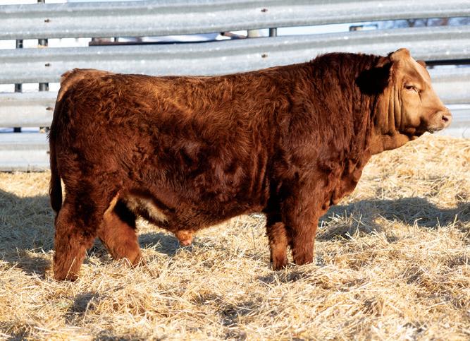 • Our lone 007 son on the red side of the offering, 007 was a high selling bull purchased from Westgold Farms in 2021