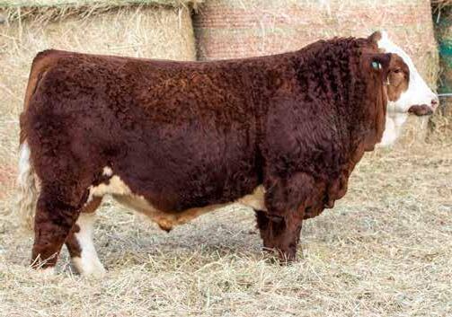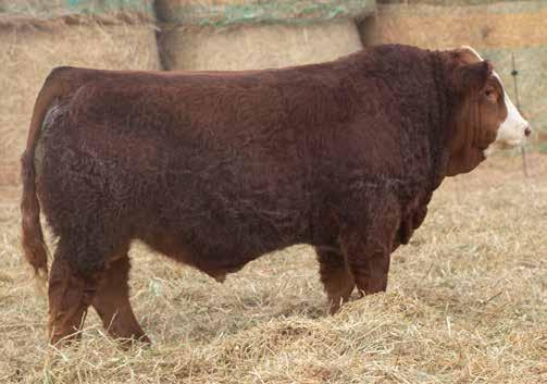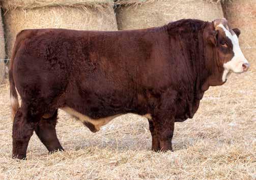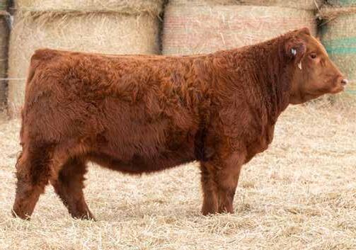 HOMO POLLED. Another high performing Broadway son that has always had that herd bull look. 99M is a big ribbed, heavy muscled bull with an up-headed presence. His dam is one of our top red cows as she is so big bodied and easy doing, and steps down on big, good feet. She had our high selling purebred bred female in the Evolution this past fall, selling to South View Ranch for $35 000.