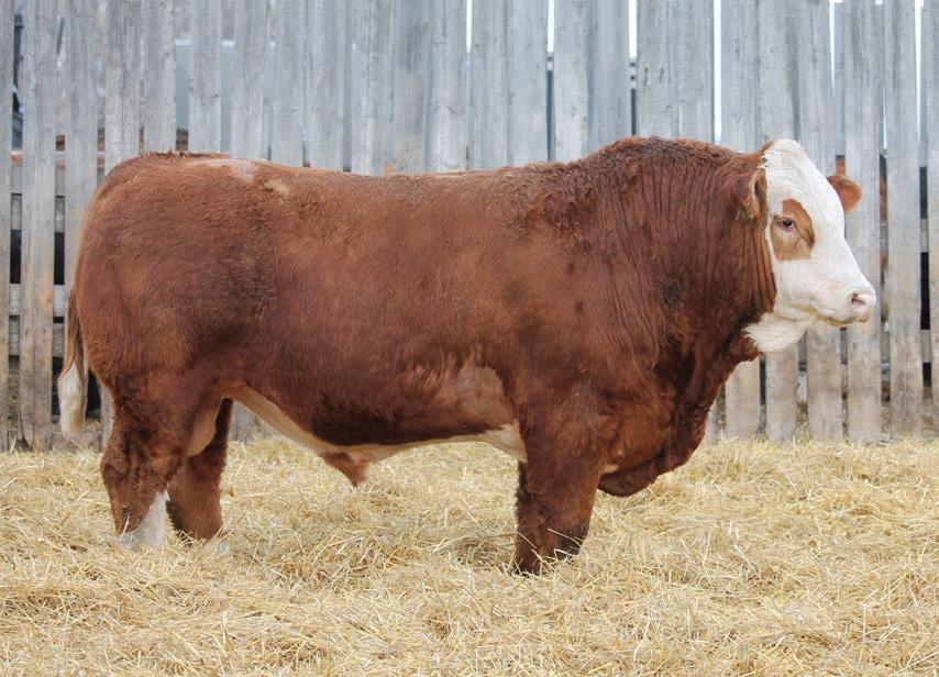 Full Fleckvieh. A dark red, easy doing son of Silver Lake Dealer that has performance and eye appeal. Silver Lake Dealer has been extremely consistent for us and continues to sire performanceoriented offspring. 306D is a descendant of the 54L cow family that we had so much success with. Lots of predictability here.