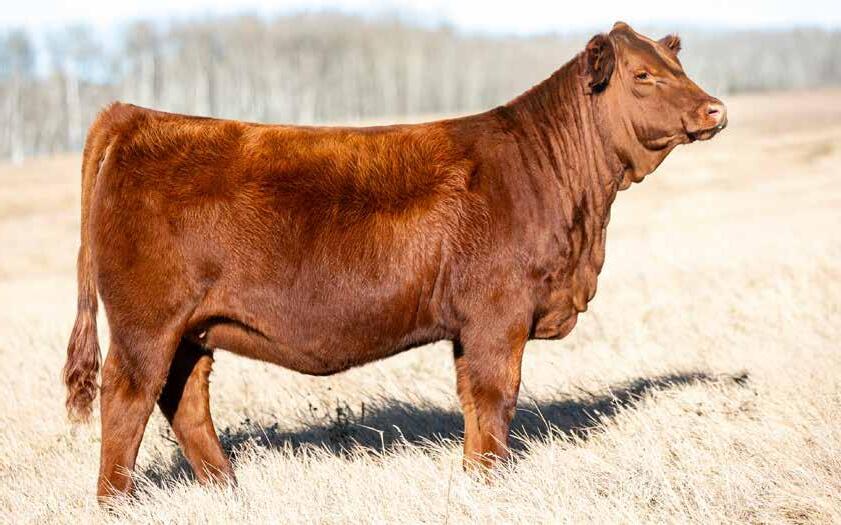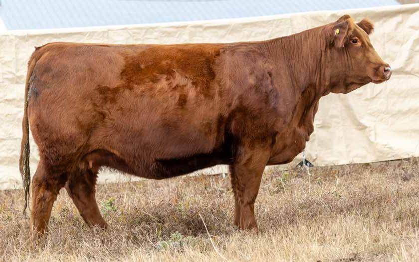 Maggie May is the result of the high-selling red female from Lewis Farms Leading Ladies Sale in 2023. Her dam has proven her place with an extremely exciting ET bull calf and natural heifer calf at home. This Trax daughter is admired for her brood cow appearance, mass of bone, and quiet demeanor.