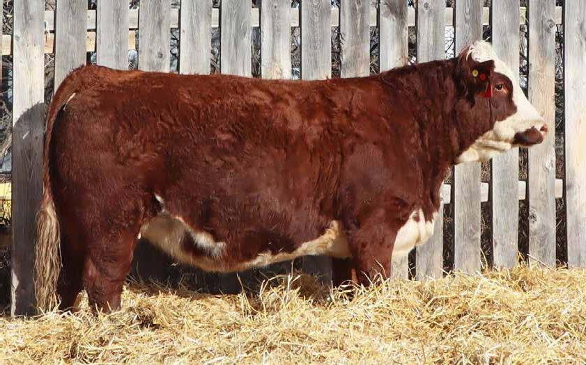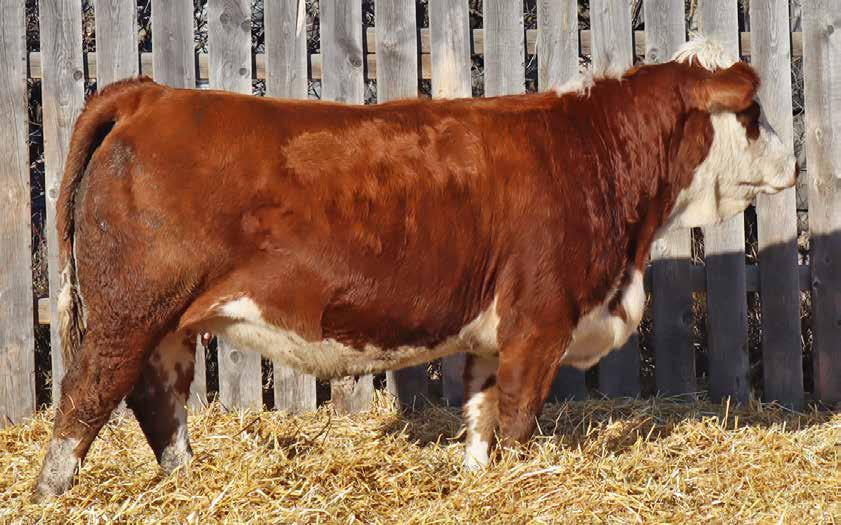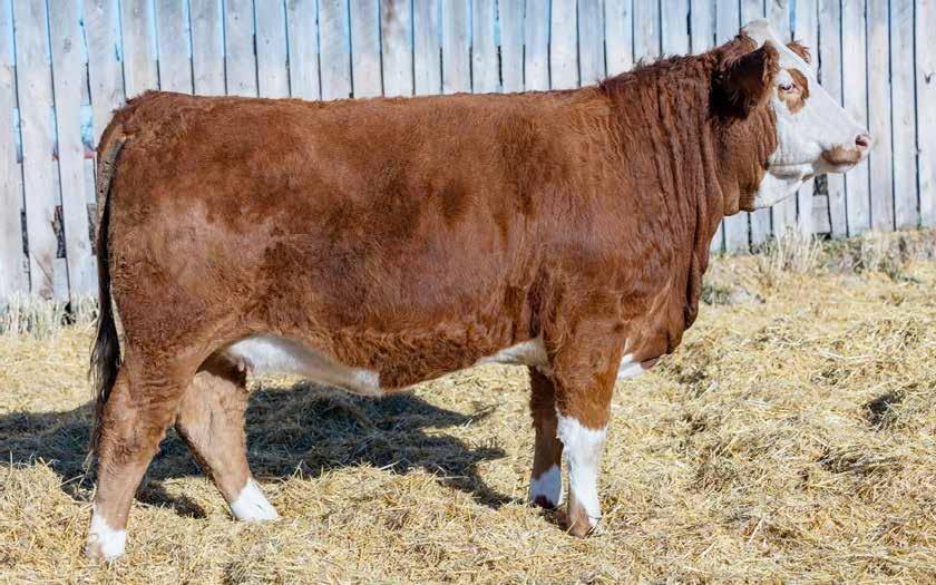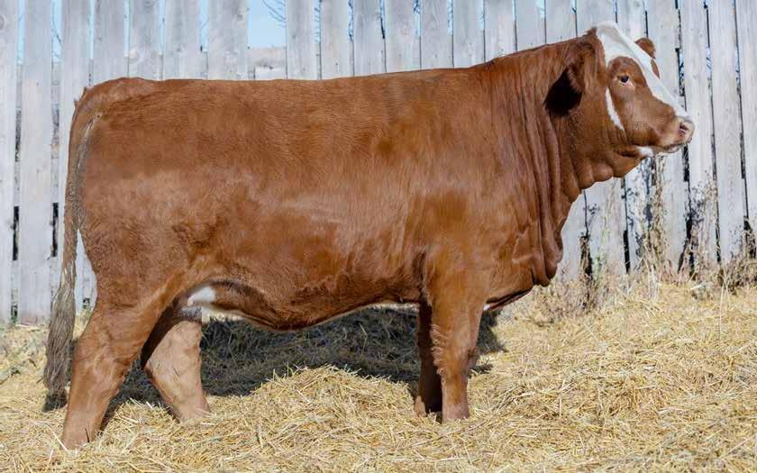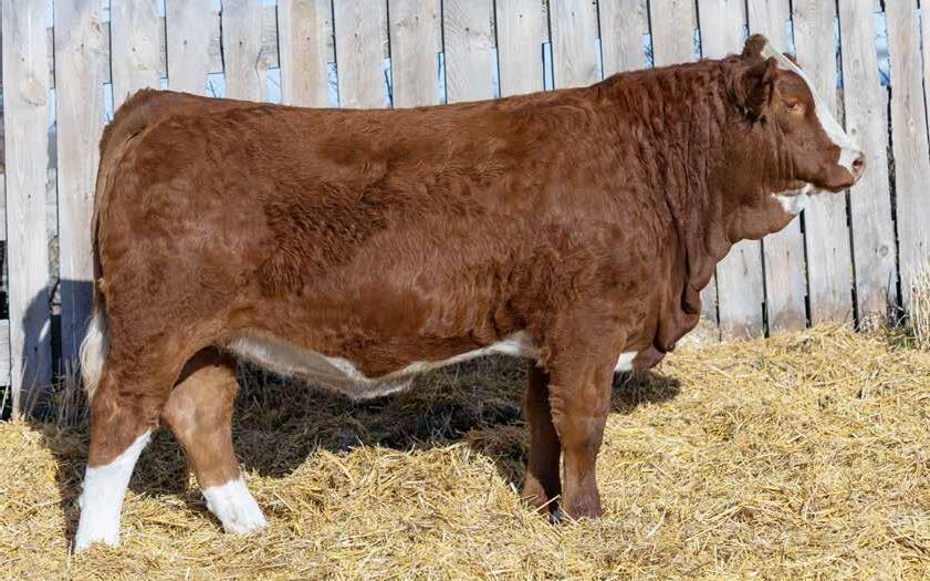 You will love this stout, big barreled No Limits daughter. We purchased her Mader The National 43H dam a few years back as a bred heifer from City View Simmentals and she has proven to be a great investment, always calving early in the season and raising ripper calves. Queen was easy to find in the heifer pasture all summer long with her natural fleshing ability and beautiful power evident from an early age. She was popular among people touring this year and seemed like a natural fit for the 2025 Border City sale.