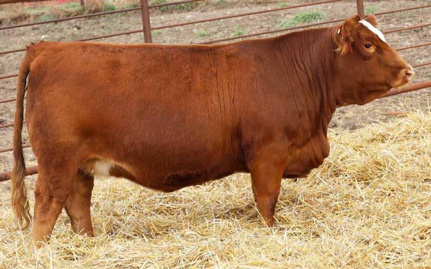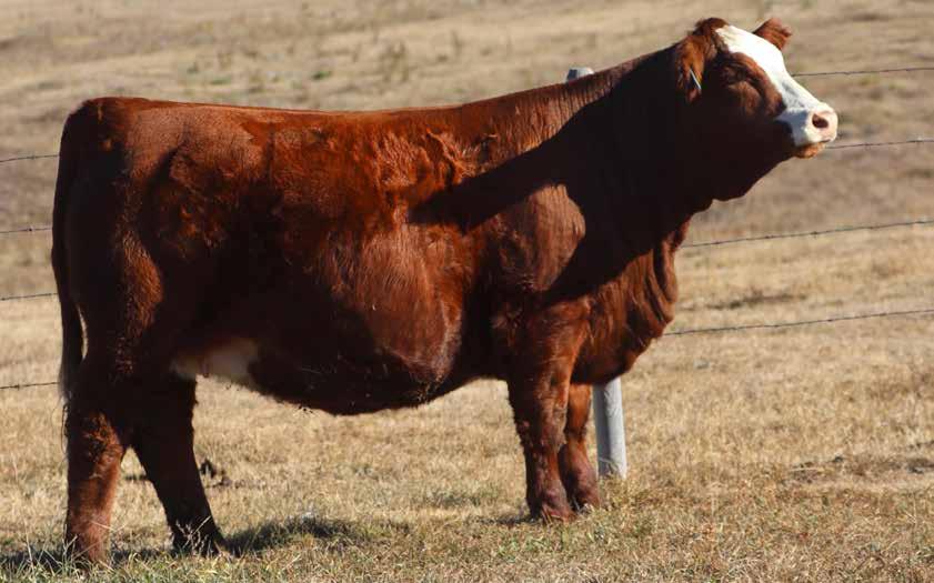 Dark red, hairy with a small blaze. This broody heifer comes with a shot of fleckvieh. Her mother is the result of an embryo we purchased off the popular 229Z cow. She is bred to an Epic son that we kept back to breed heifers. He is a maternal brother to Sheriff and has a 72 pound birth weight with a 13.7 CE EPD.