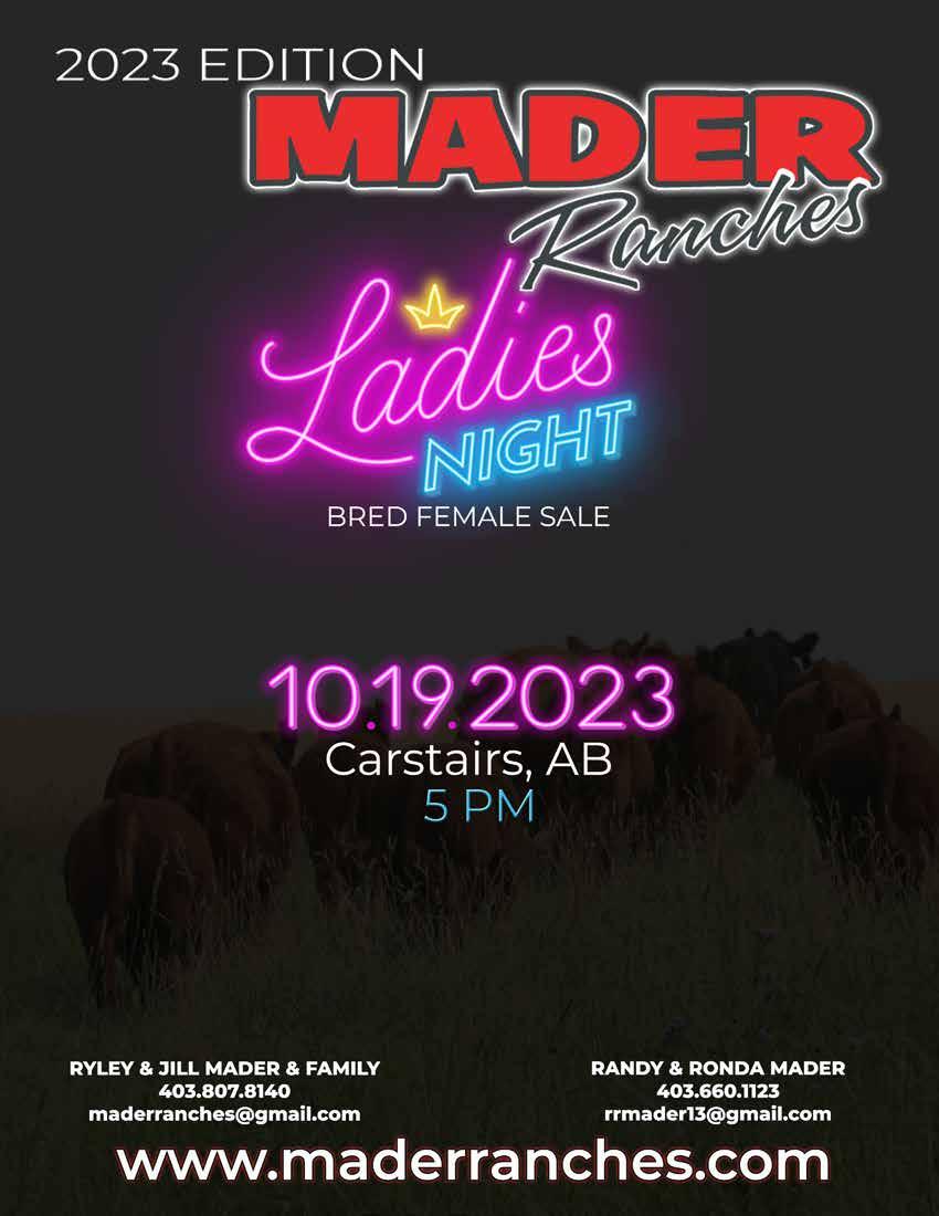 29 Cherry Creek Farms Online Bull & Female Sale DLMS.ca 26 Six Mile Ranch Genetic Focus 2023 Sale Fir Mountain, SK 27 Pahl Livestock Sale Medicine Hat, AB 29 Camrose Country Classic 12th Anniversary Sale Viking, AB 32 Lewis Farms Leading Ladies Female Sale Spruce Grove, AB 33 30 The Associate Invitational DLMS.ca 31