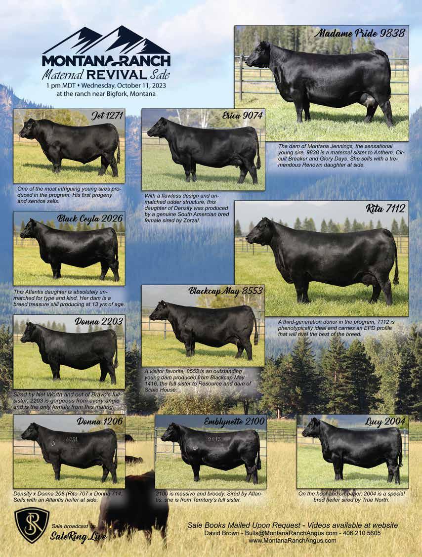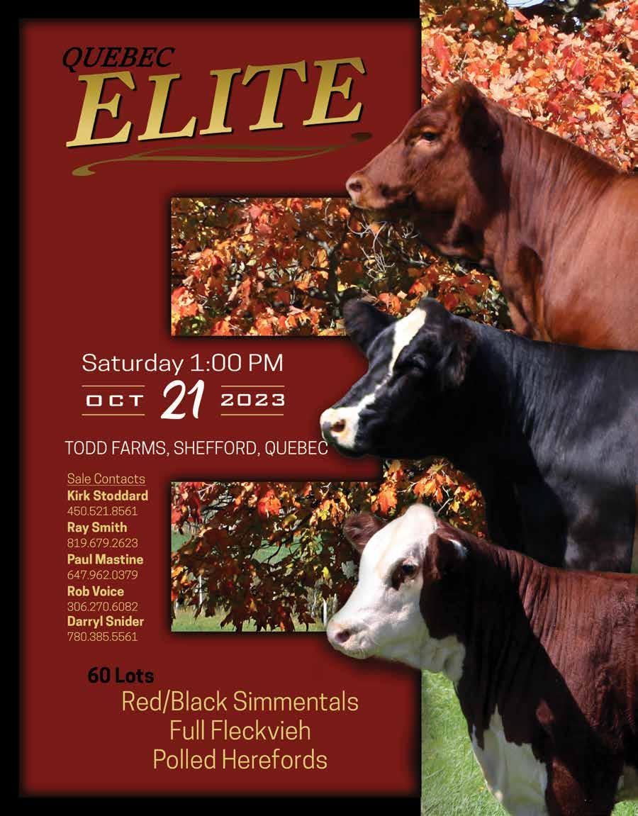 Wed Thu Fri Sat 11 12 13 14 18 19 20 21 25 26 27 28 Ontario Simmental Solution Sale Listowel, ON 8 Stars of the Valley Simmental Online Sale Metcalfe, ON 16 Mader Ranches 2023 Edition Ladies Night Carstairs, AB 18 Colours of Autumn Limousin Sale DLMS.ca 20 Quebec Elite Sale Shefford, QC 19 The Evolution: Volume 3 Lloydminster, SK 12 Anchor D “Pasture Treasures” Female Sale Rimbey, AB 14 Vos Vegas & Enright Farms Production Sale DLMS.ca 15 Montana Ranch Female Sale Bigfork, MT 11 4 5 6 7