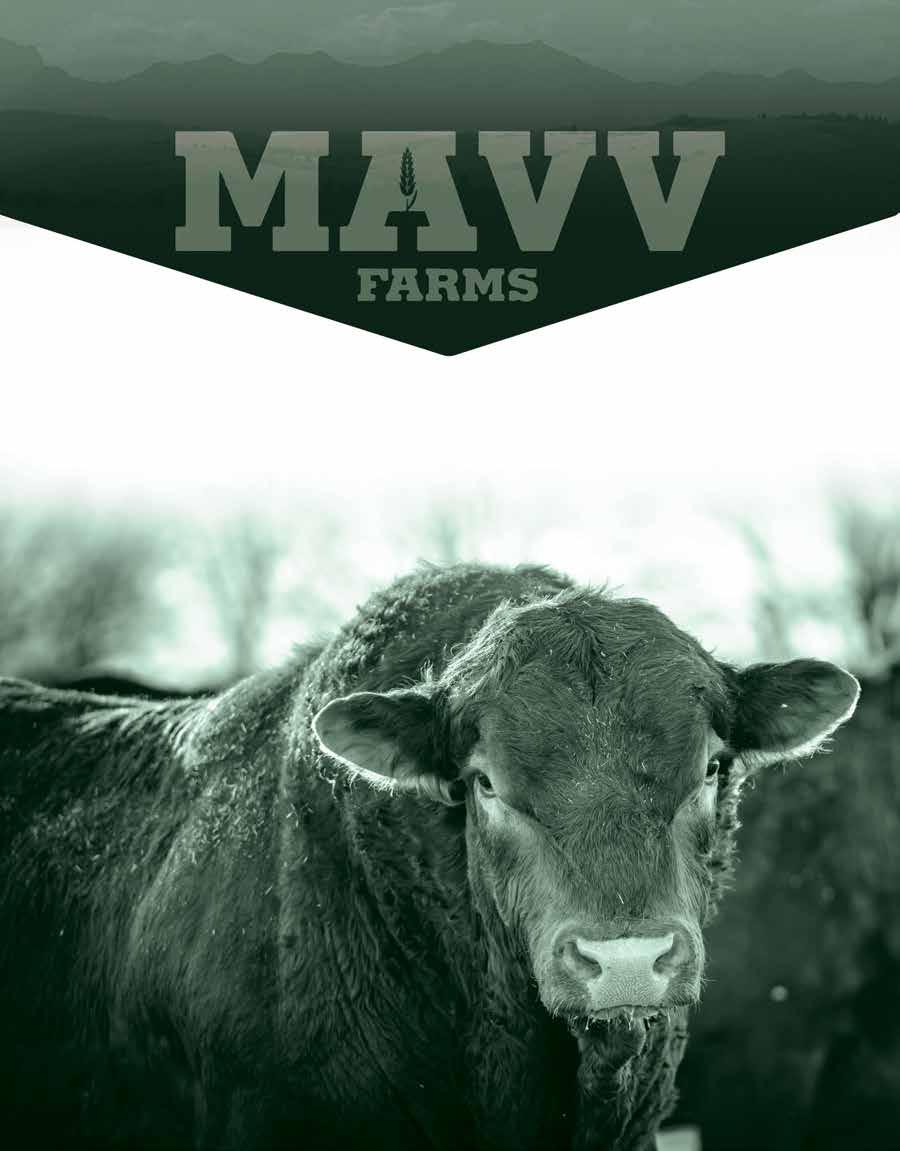 MIKE IMLER 403.888.1928 MAVVFARMSINC@GMAIL.COM BULL & FEMALE EVENT THURSDAY DECEMBER 14 , 2023 338060 80TH ST EAST | OKOTOKS, AB COWS, BRED HEIFERS & HEIFER CALVES & 50 DISPERSAL FLECKVIEH - RED SIMMENTALS - BLACK SIMMENTALS - RED ANGUS BULLS & FEMALES OF RED ANGUS COW HERD MAVV Farms Bull & Female Event | Dec. 14 Red Angus & Simmental BMS REP - Scott 403-370-3010, Darryl 780-385-5561, Martin 306-220-7901, Jax 306-830-0456, Cody 403-845-8806 55