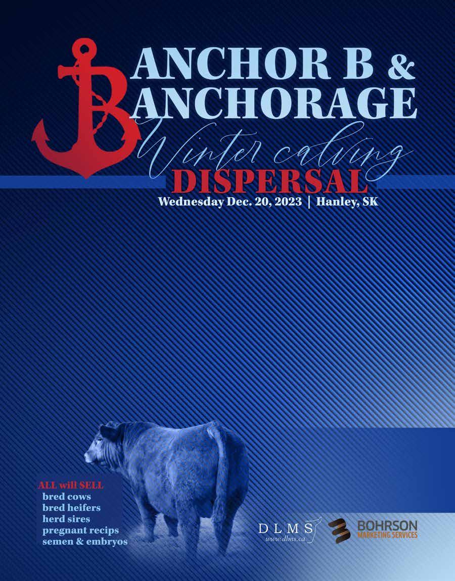 WILBAR MAYFLOWER 605F -SHE SELLSBROOKING ANNIE K 7131 -SHE SELLSANCHORAGE MS INSTINCT 9292 -FULL SIB SELLSANCHOR B LIMOUSIN & ANCHORAGE FARMS Jay and Beverly Bohrson & Family JAY (306) 544-7500 BEV (306) 270-1141 RILEY (639) 213-7777 Scott and Rebecca Bohrson & Family SCOTT (403) 370-3010 62 Anchor B Limousin & Anchorage Farms Dispersal Sale | Dec. 20 Black Angus & Limousin Scott 403-370-3010, Rob 306-270-6082, Taylor 306-821-4169, Darryl 780-385-5561, Martin 306-220-7901, Jax 306-830-0456, Nate 306-869-7130, Riley 639-213-7777