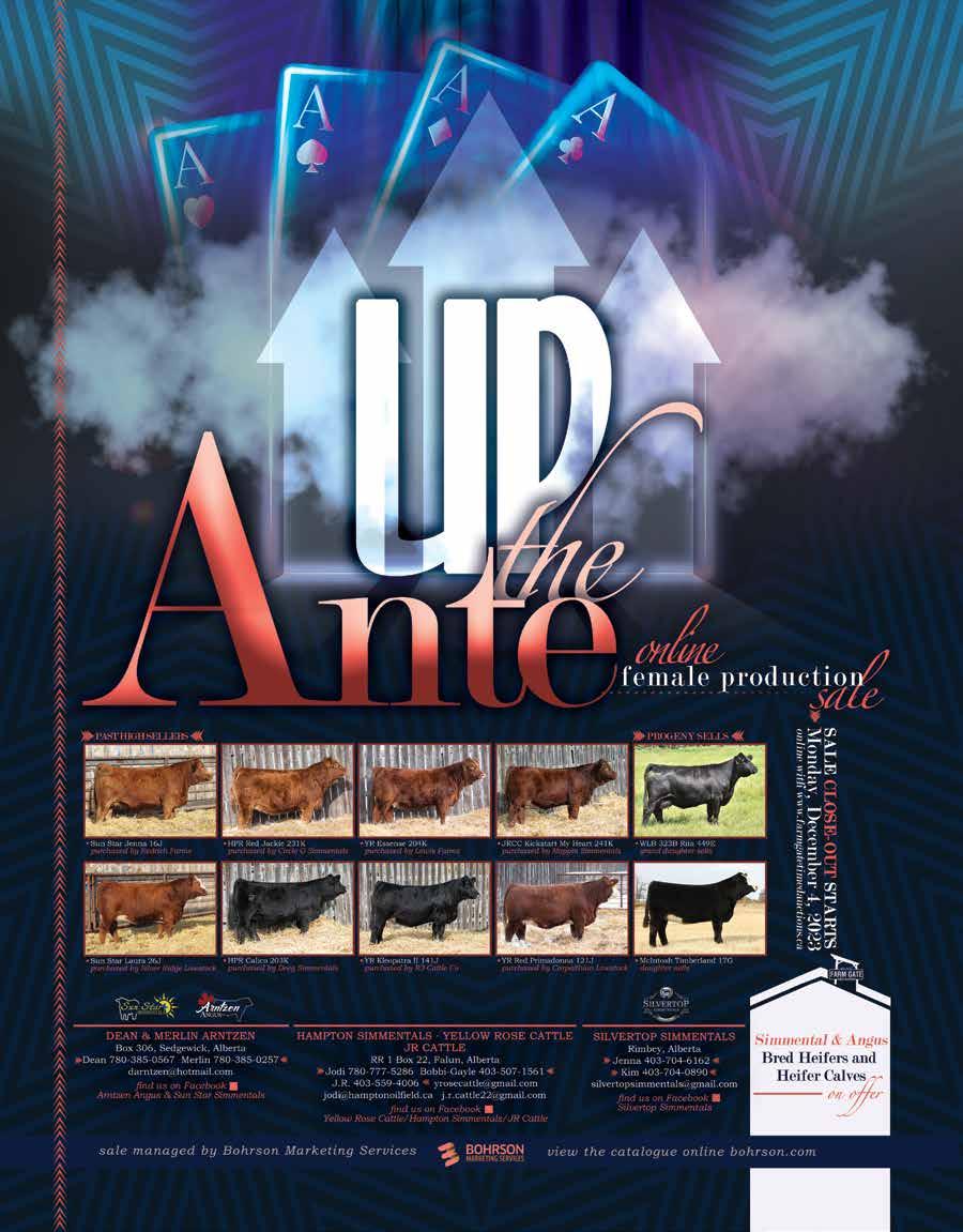Fantasyland Hotel Edmonton, AB Online with DLMS DLMS.CA DECEMBER 31, 2023 CELEBRATE AMONGST YOUR CATTLE FRIENDS CONTACT US TO CONSIGN | REQUEST A CATALOGUE TODAY BOHRSON MARKETING SERVICES KIRSTEN FORNWALD (403) 850-4900 OR KIRSTEN@BOHRSON.COM UNDER THE BMS BLOCK REWARDING IN SCHOLARSHIP FUNDS TO OUR YOUTH! Book Today $50,000 LIVE SALE + ONLINE CLOSEOUT PHONE NUMBER 1-800-737-3783 RESERVATIONS DUE BEFORE NOVEMBER 30, 2023 Callers MUST mention they are attending the Bohrson New Years Eve Party or provide the group code #497529 New Years Resolution Sale | Dec. 31 All-Breed Event Scott 403-370-3010, Rob 306-270-6082, Taylor 306-821-4169, Darryl 780-385-5561, Martin 306-220-7901, Jax 306-830-0456, Cody 403-845-8806, Nate 306-869-7130, Riley 639-213-7777 63