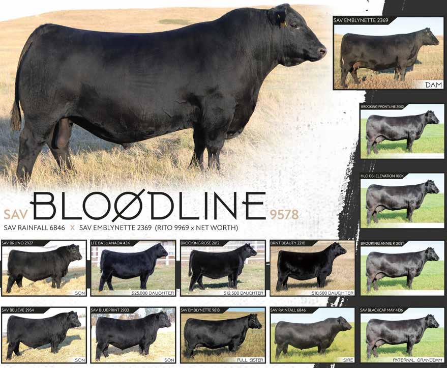 SAV Theory 2914 is a highly recommended herdsire. He possesses a strong and masculine appearance with a straight top line, a big square hip, and impressive body dimension. In addition, he has a gentle and calm temperament, excellent foot structure, easy fleshing ability, and is an great natural breeder who covers females effortlessly. What sets him apart is his exceptional pedigree, which includes some of the most renowned cows in the Angus breed. His legendary dam, SAV Emblynette 2369, is unparalleled in terms of her contribution to phenotype, performance, and production. She has generated over 4 million in progeny sales, with many of the top-selling bulls and females in SAV production sales. Furthermore, his paternal dam, SAV Emblynette 3243, is an exemplary Angus female and one of the most impressive daughters of Density worldwide. The initial calf crop at Brooking has instilled great excitement, hinting at a promising future for SAV Theory 2914. There will only be 100 straws sold for spring breeding in Canada. 50 in the April sale and 50 in the May sale.
