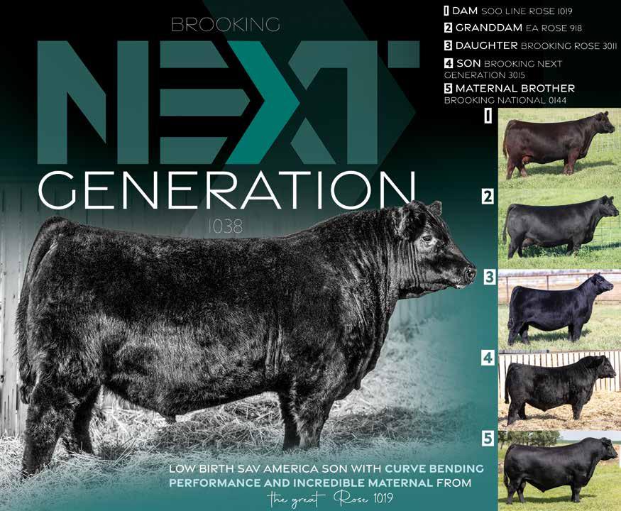 Next Generation was amongst the first set of sons to sell in Canada by the world record setting $1.51 million SAV America 8018 and is backed by one of the most ideal Angus donors in the breed, Rose 1019. Next Generation was an $85,000 high seller to Voss Angus in Iowa where he was highly regarded for his herd sire look being big featured, clean sheathed, big scrotal, wide hipped, masculine and huge centre bodied. We have come to expect sons like Next Generation from the herd bull producer, Rose 1019 as her track lists also include sons selling for $70,000, $54,000, $47,500, $45,000, $30,000, $25,500 and $25,000. Next Generation has bred on exactly how we anticipated and his first set of sons were absolute standouts at the 2024 Brooking Bull Sale where they averaged over $11,000 and as popular as those bulls were, we strongly believe his females will be as highly sought after or more. Next Generation offers mass and power, calving ease, big time maternal and a great look.