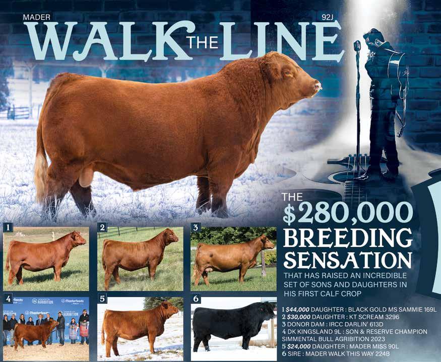 HOMOZYGOUS POLLED :: A breeding sensation that has been well known to create exciting, highly marketable progeny! His donor dam is a member of the popular Soda Pop flush and she is also responsible for the $76,000 bred heifer through FNL in 2018 that was a full sibling to Bond himself. Bond is one of the breed legend, Walk This Way’s greatest sons and his track record speaks for itself, including the $70,000 SVS Crossfire bull at Hoegl Livestock. Bond consistently breeds his style and presence into his calves and adds rib shape and depth. They are stout made, powerful cattle that are still sound structured, smooth and attractive.