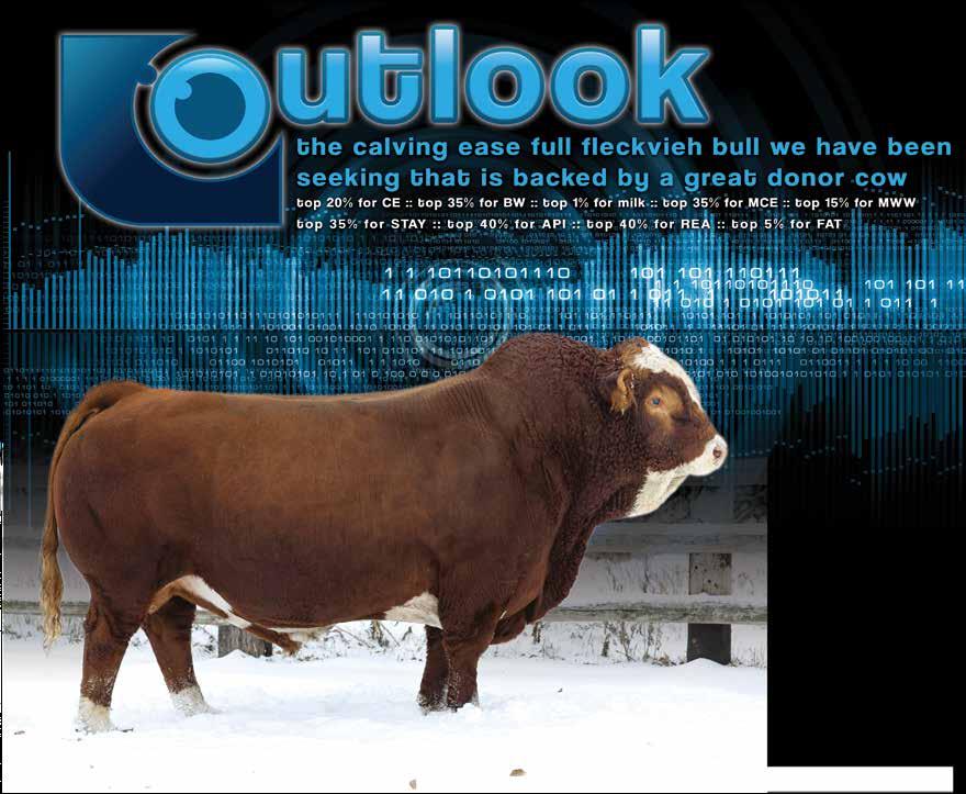 FULL FLECKVIEH :: NON-DILUTOR :: Anchor D Outlook wraps all the quality together that we seek when sourcing a new calving ease, full fleckvieh bull. He started at a 72 pound birthweight and is in the top 15% for CE, top 30% for BW, top 25% MCE, and top 5% for Milk – overall he is in the top 1/3 of the CSA database for 8 of the 14 traits. Past his impressive EPDs, he does the important things right with a complete phenotype and awesome pedigree. His sire is a royally bred, maternally stacked individual and Outlook’s dam was a past lead off female and high seller that is beautiful uddered, good footed, fault free, and very productive - her first calf was Outlook and second calf was a $10,000 heifer at FNL. Outlook is very complete to view with lots of pigment, muscle, depth, smoothness, and sound structure.