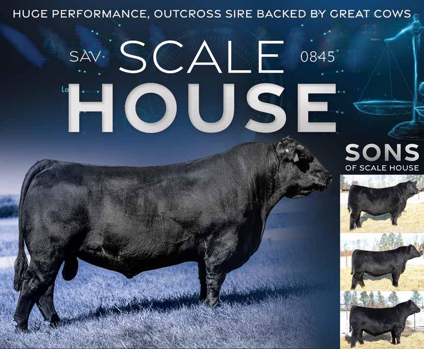 Scale House was the $275,000 high seller in the 2021 Schaff Angus Valley sale. A true crowd favorite and to many, a man among boys. Sired by the outcross performance sire Marcys Scale Crusher and out of one of the many donor females that are full sisters to the legends SAV Resource and SAV Renown. Scale House has body, mass, muscle shape and huge performance tabulations in the top percentiles of the breed. Add some frame, length, and pounds back into your Angus cattle with Scale House.