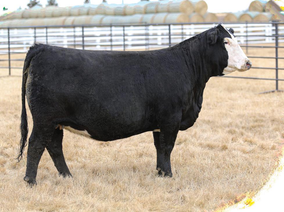 Black and bold in his design, Erixon Aerosmith 11K is the black version of the breeding sensation Walk The Line and he carries every ounce of the quality, look, and generating ability that made that lineage famous. He is a big-outlined, heavystructured individual with extra bone, mass, and raw power, yet still reads clean through his chest floor with that chiseled, attractive front end and refined head shape his legendary dam stamps so consistently. He carries a true herdbull crest and presence, and the way Aerosmith moves that is proud, smooth, and confident—tells you he knows he’s built to lead a program. His dam, Darlin only elevates his value as she has truly done it all with dominating on the show road, producing high-selling progeny, and staking her claim as one of the most important breeding females in the breed. Her impact now reaches far beyond her own production, as she is already three generations deep in the backing of multiple donor females being used widely today. That kind of cow family momentum doesn’t happen by accident Aerosmith 11K blends this elite maternal heritage with a phenotype geared for modern, quality-driven programs. Backed by proven, multigenerational cow power and built to add consistency, quality, and value to any program focused on breeding cattle that last and generate. I could only imagine progeny of Aerosmith come back Homo/Homo and seeing the incredible pedigree he carries shape the black Simmental industry going forward.