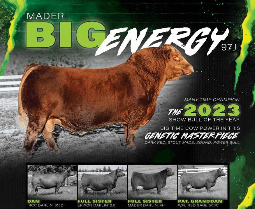 Night Shift is mothered by a gorgeous, hard working daughter of the great 7X donor. Here’s a homozygous black, big time power bull with great maternal lineage. The first 15 bulls in Mader’s 2025 bull sale are Night Shift sons and they showcase the power and consistency he adds to his progeny!