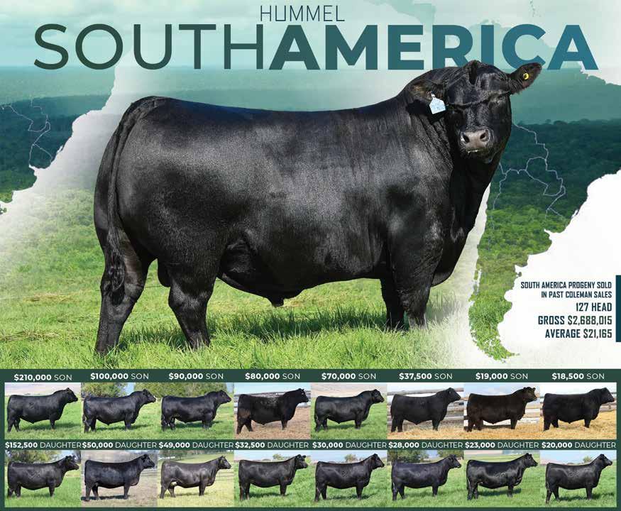 We are excited to bring you one of the most intriguing sires to hit North America in years. South America is the talk of the industry, from his original display at OKC to the progeny at Coleman Angus, the hype is well deserved. This is the first time his semen has been available in Canada and this is your opportunity to flush your best cows this way. South America brings a total outcross pedigree but from proven Argentina genetics that trace back to US or Scottish ancestors. As Dale Hummel says, it was a revelation to see how, over several generations of selection pressure, a once-similar genetic base can diverge onto a unique path. We are confident that Hummel South America will make a lasting impact on the Angus breed while also offering tremendous value when utilized in a diverse range of other operations and scenarios. South America brings a functional, attractive phenotype, great hair coat, and can make ELITE cattle of both sexes. Invest with confidence - South America is now in Canada.