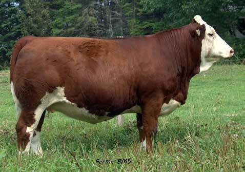 C’est avec un pincement au coeur que nous offrons Kitkat dans la vente cette année, elle représente vraiment le genre de femelle que nous cherchons à produire. Une superbe taure très féminine, rouge foncé avec beaucoup de style qui développe un très beau pis. Elle nous impressionne par la profondeur de son corps et la qualité de sa structure. Son père, FSMB Pol Eddy 3E, n’a plus besoin de présentation, sa progéniture est très constante sur la ferme. Du côté maternel, on retrouve une excellente fille de MF Mr. Evan 14P que nous avons acquise il y a quelques années dans cette même vente et qui nous vient de la Ferme Sibelle Fleck. C’est le genre de vache qui est fonctionnelle, facile d’entretien avec un très bon pis