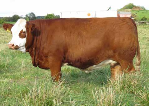 Bianca is the result of crossbreeding two prolific bloodlines: Dirty Harry and BMS Pol Atlantis. Her dam, BBBG 203F, is a thick and deep cow with a beautiful udder. She is out of the BBBG group, and her dam is from the Anchor D Ranch herd. Two maternal sisters of 203F were sold to Virginia Ranch and Clearwater Simmental in Alberta. Like her dam, Bianca combines muscularity, easy keeper, quality udders and high genetic potential, making her a high-calibre breeding female for your breeding program. She was bred to Virginia Foul Play on March 28 for calving in early January.