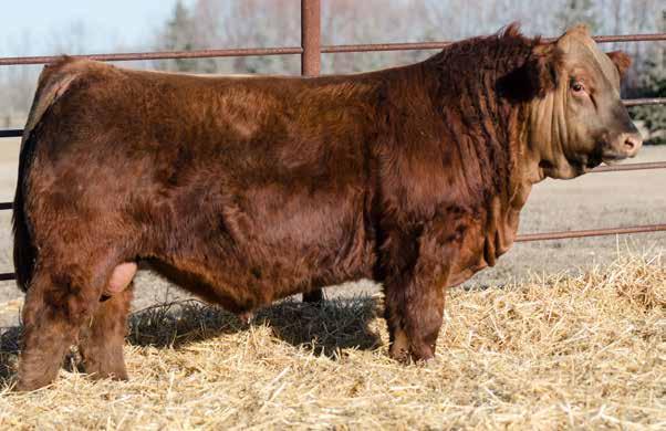 We love the combination of calving ease and performance that this bull has. You have to admire the amount of rib shape and muscle expression this bull offers. He comes to you with an 80 lb birthweight, but packs a punch.