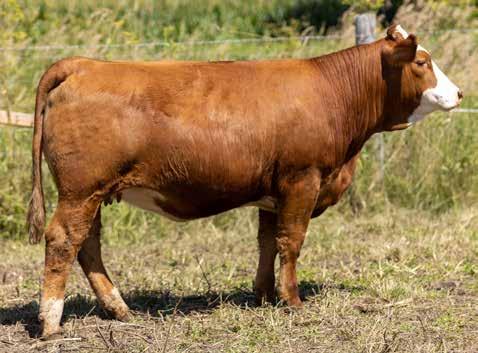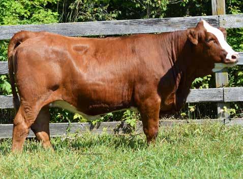 Jamaica is an attractive baldy female that has been bred to be a no miss brood cow. If she turns out to be half the cow her dam is you will certainly have a female destined for the donor pen. Not only does this heifer sport the perfect money strip but she also carries a tremendous pedigree to back her. Sired by, Hi-Tech Explosive ET 201E, who was the 2018 Reserve Champion Simmental Bull at Expo Boeuf and bred to Hi-Tech Justice 103J, the first son of the 2019 Louisville Fleck Effect Champion bull – we believe the calf she is carrying will be a true game changer. Dipping into 3 of the most prominent cow families in our herd- Flashpoint going back to the legendary Lenny bull from Elm Tree, Explosive going back to the donor female we purchased from High Country, and last but not least our Red Label daughter Arizona who goes all the way back to Harold and Anne Cheslock.