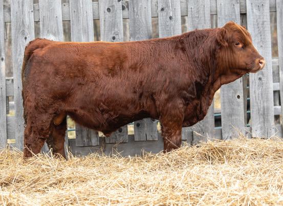 Maven is a dark red smooth made, calving ease bull that is the youngest in the pen. His beautiful dam is sired by the Come As U R Red Rocket son that we purchased from Grant Lodge Farms. With Tycoon and Red Rocket in his pedigree you know he is going to be good. Keep an eye on this guy, due to his younger birthdate, he could be the sleeper of the sale.