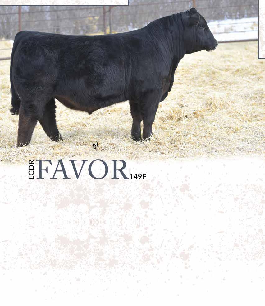 HOMOZYGOUS POLLED :: HOMOZYGOUS BLACK :: Favor is a standout individual that represents a futuristic combination of phenotype, pedigree predictability, and strong data. He is a son of the popular Witness sire out of Sugar C4, arguably the most influential cow in the breed today. She is also the dam of well known sires such as Proclamation, High Road, and Impact and her progeny and embryos are consistently the high sellers whenever offered. Favor himself is an attractive, sound, long made bull with a level hip and tailhead and still plenty of power. His EPDs put him near the top of most categories - WW and YW top 1%, API and TI top 1% - an impressive profile with solid accuracy for a young sire.