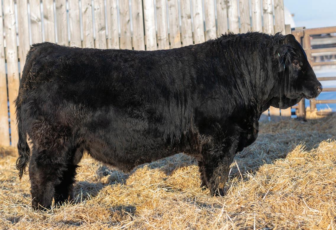 215H has it all. Length, flat wide top, depth, and a little splash of white on his head. With Loaded Up and Captain Morgan this big black bull is sure to add the style and performance to compliment your herd.